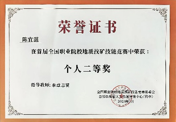 全國(guó)職業(yè)院校地質(zhì)找礦技能競(jìng)賽二等獎(jiǎng)