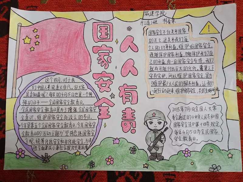 為增強全體師生的安全防范意識、普及安全知識,提高自護技能、確保國家安全,城建學(xué)院黨總支黨建小組于2020年4月18-21日開展了“國家安全教育日”手抄報比賽。