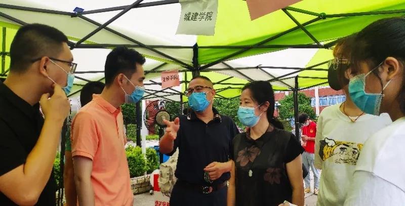 9月8日19級城建學(xué)院學(xué)子們已經(jīng)順利返校準(zhǔn)備開啟久違的校園生活!由城建學(xué)院鄒筱萍常務(wù)副院長、城建學(xué)院戴玉林副院長、城建學(xué)院學(xué)管主任陳權(quán)豐老師、城建學(xué)院團(tuán)總支書記朱志豪老師一同帶隊領(lǐng)導(dǎo)志愿者小伙伴在校門口搭起綠色長廊大棚,為返校學(xué)子在體溫檢測和返校登記過程中提供了一片清涼,甚至有警衛(wèi)小伙伴威風(fēng)凜凜的站在門口守護(hù)著每一位學(xué)子的歸來。