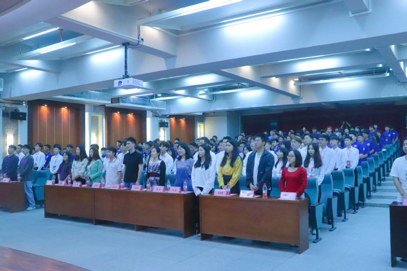 主持人宣布大會正式開始,全體起立、奏唱團歌。整齊的歌聲環(huán)繞著整個會場,把大會氣氛推到高潮。
