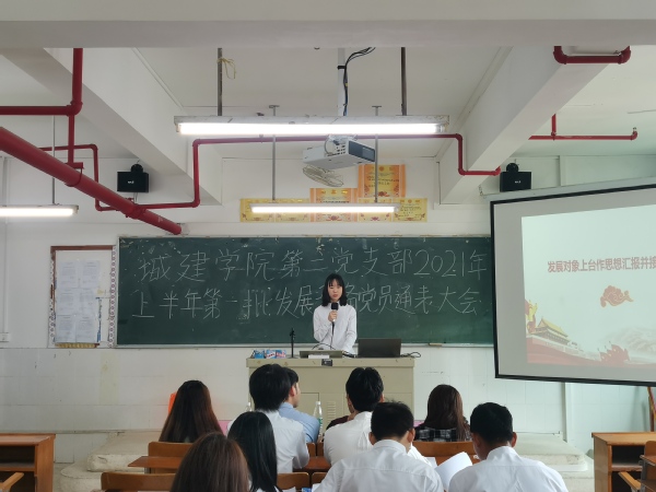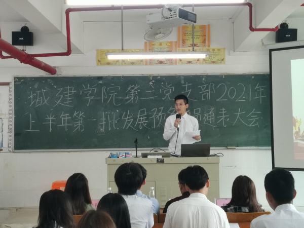 為進一步規(guī)范黨員發(fā)展教育,同時為黨組織輸送新鮮血液,壯大黨員隊伍,城建學(xué)院黨總支于2021年04月09日上午10:30,在西三教學(xué)樓510室召開城建學(xué)院第二黨支部2021年上半年第一批發(fā)展預(yù)備黨員通表大會。