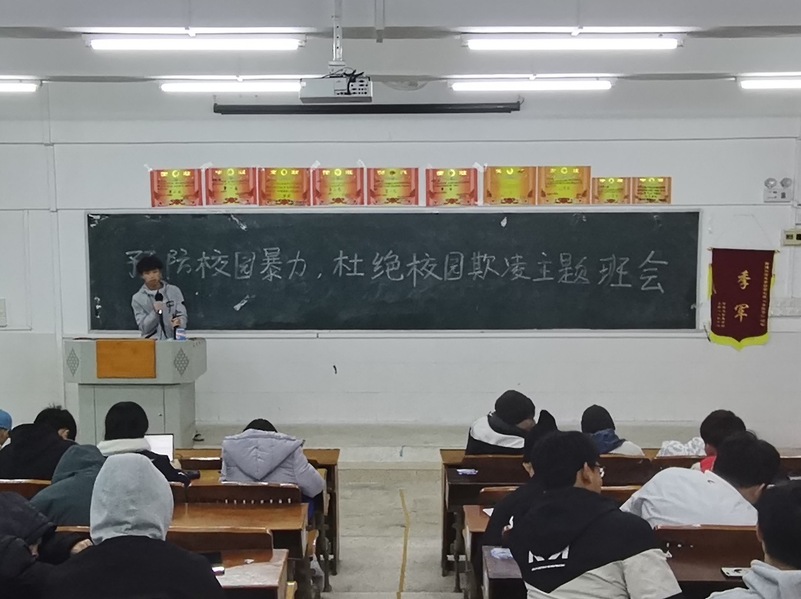 為進一步加強校園法制教育,遵守校規(guī)校紀,規(guī)范學(xué)生行為,促進學(xué)生身心健康,建設(shè)平安、和諧校園。2021年3月24日晚上七點城建學(xué)院于西三507舉辦了“預(yù)防校園暴力,杜絕校園欺凌”主題班會活動。
