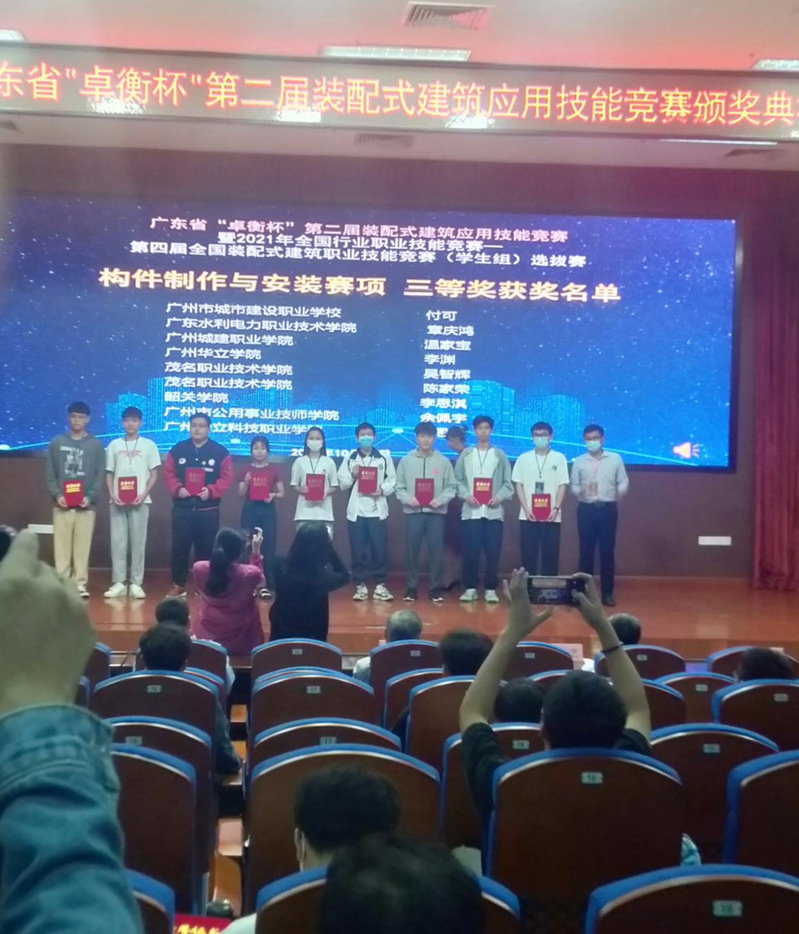 2021年10月30日,由廣東省土木建筑學(xué)會(huì)及廣東省建設(shè)教育協(xié)會(huì)主辦的廣東省“卓衡杯”第二屆裝配式建筑應(yīng)用技能競(jìng)賽(學(xué)生組)暨2021年全國行業(yè)職業(yè)技能競(jìng)賽——第四屆全國裝配式建筑職業(yè)技能競(jìng)賽(學(xué)生組)選拔賽,在廣東省水利電力職業(yè)技術(shù)學(xué)院從化校區(qū)隆重舉行。此次大賽分為構(gòu)件深化設(shè)計(jì)與構(gòu)件制作安裝兩個(gè)賽項(xiàng),全省16所高校的55個(gè)參賽隊(duì)伍參加了本次比賽,包括深圳大學(xué)、仲愷農(nóng)業(yè)工程學(xué)院等學(xué)校的學(xué)生同臺(tái)競(jìng)技。