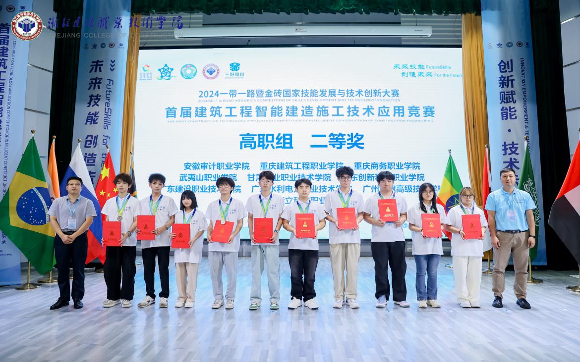 9月26日至28日,由教育部中外人文交流中心、一帶一路暨金磚國家技能發(fā)展國際聯(lián)盟和中國發(fā)明協(xié)會等單位聯(lián)合主辦,西安三好軟件技術(shù)股份有限公司、浙江建設(shè)職業(yè)技術(shù)學(xué)院等單位聯(lián)合承辦的2024一帶一路暨金磚國家技能發(fā)展與技術(shù)創(chuàng)新大賽首屆建筑工程智能建造施工技術(shù)應(yīng)用賽項(BRICS-ST-027)全國總決賽,在浙江杭州舉行。本屆大賽自4月起,通過校園選拔賽、全國區(qū)域選拔賽,共有來自全國600余所高校、7萬余名師生參與,最終來自全國31個?。ㄗ灾螀^(qū)、直轄市)和孟加拉國、馬來西亞等國際留學(xué)生共計382所院校、415支隊伍、1500余名師生入圍總決賽。經(jīng)過激烈角逐,我校城建學(xué)院學(xué)生徐文升、黃梓煥表現(xiàn)出色,在首屆建筑工程智能建造施工技術(shù)應(yīng)用賽項決賽(??平M)中榮獲全國二等獎,指導(dǎo)教師喬亮、甘英浩榮獲優(yōu)秀指導(dǎo)教師稱號,同時,我校憑借前期出色的組織工作,榮獲組委會頒發(fā)的優(yōu)秀組織獎。