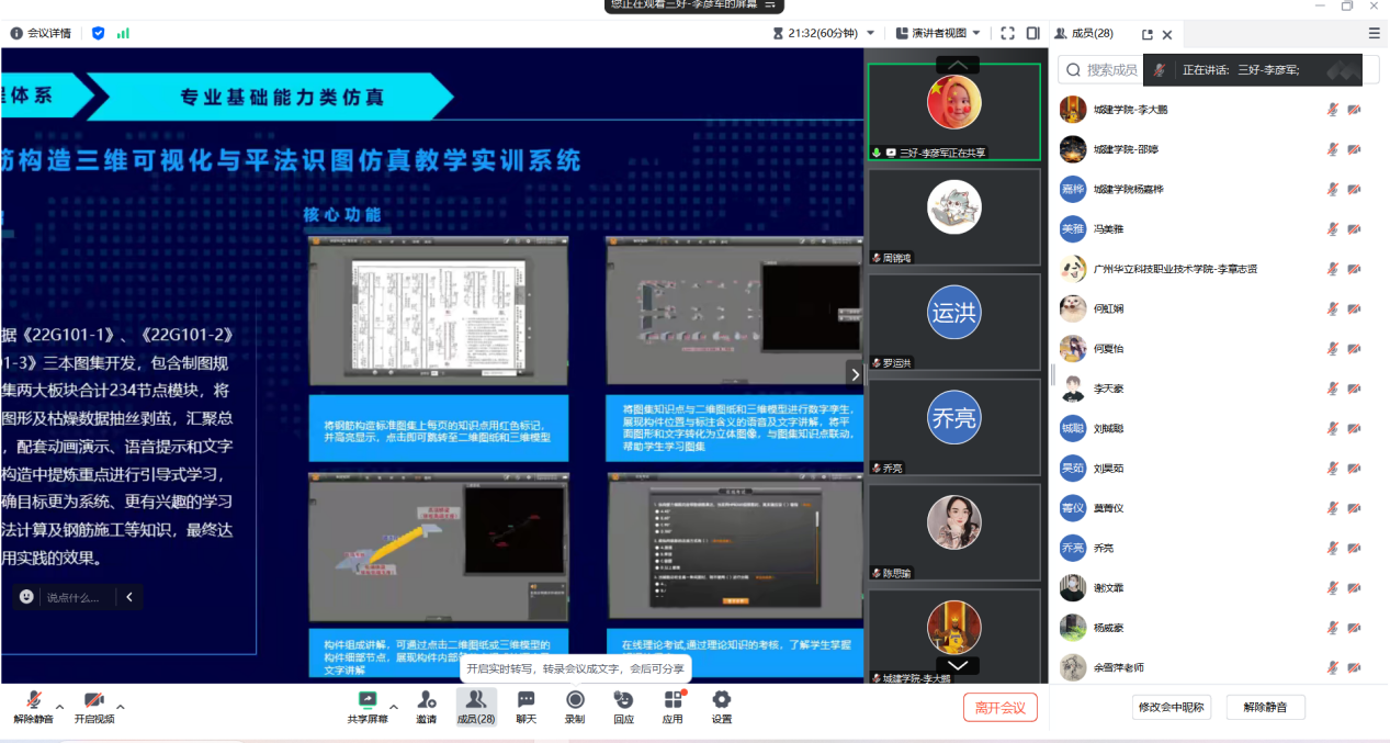 為深入貫徹國(guó)家關(guān)于教育數(shù)字化的戰(zhàn)略部署,加速智能建造與教育教學(xué)深度融合的進(jìn)程,我院于11月7日在線上成功舉辦了建筑施工工藝虛擬仿真軟件實(shí)操師資培訓(xùn)活動(dòng)。學(xué)院院長(zhǎng)、教務(wù)處相關(guān)人員、基層教學(xué)組織負(fù)責(zé)人、教學(xué)骨干教師及相關(guān)職能部門(mén)教師等44名教師參與了培訓(xùn),城建學(xué)院院長(zhǎng)陳積光主持。