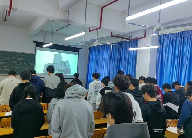 上午10∶01—10∶02防空警報拉響,警鐘長鳴,我院正在上課的教師組織學生起立,師生共同默哀;