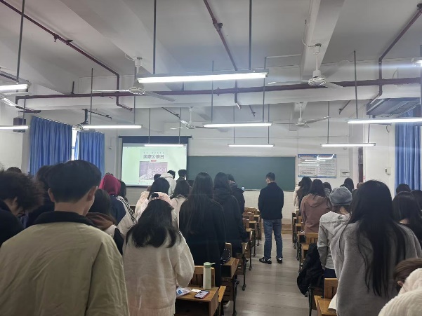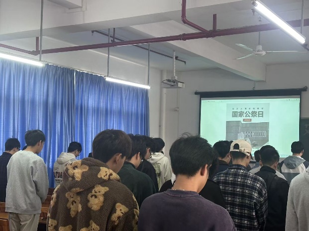 國(guó)行公祭,法立典章。鑄茲寶鼎,祀我國(guó)殤。教師黨支部書記劉昊茹給24級(jí)地礦專業(yè)學(xué)生講述抗日戰(zhàn)爭(zhēng)時(shí)期的英雄事跡、南京大屠殺的悲慘史實(shí),以及新中國(guó)成立以來取得的輝煌成就,讓在場(chǎng)的每一位同學(xué)都深受觸動(dòng)。教師黨支部組織統(tǒng)戰(zhàn)委員、輔導(dǎo)員楊嘉樺給23級(jí)建工專業(yè)學(xué)生召開主題班會(huì),他表示,中國(guó)人只有發(fā)光發(fā)熱,砥礪前行努力振奮中華,民族復(fù)興才能守護(hù)那些“不能忘卻的記憶”,愿以吾輩之青春,捍衛(wèi)盛世之中華!羅遠(yuǎn)明、馬芳、楊艷、鄭建勛、邵婷、陳思瑜、劉鋮聰?shù)冉處?,利用課堂三分鐘肅立默哀,緬懷革命先烈,悼念南京大屠殺中的無辜死難者以及為中國(guó)人民抗日戰(zhàn)爭(zhēng)勝利獻(xiàn)出生命的英雄。