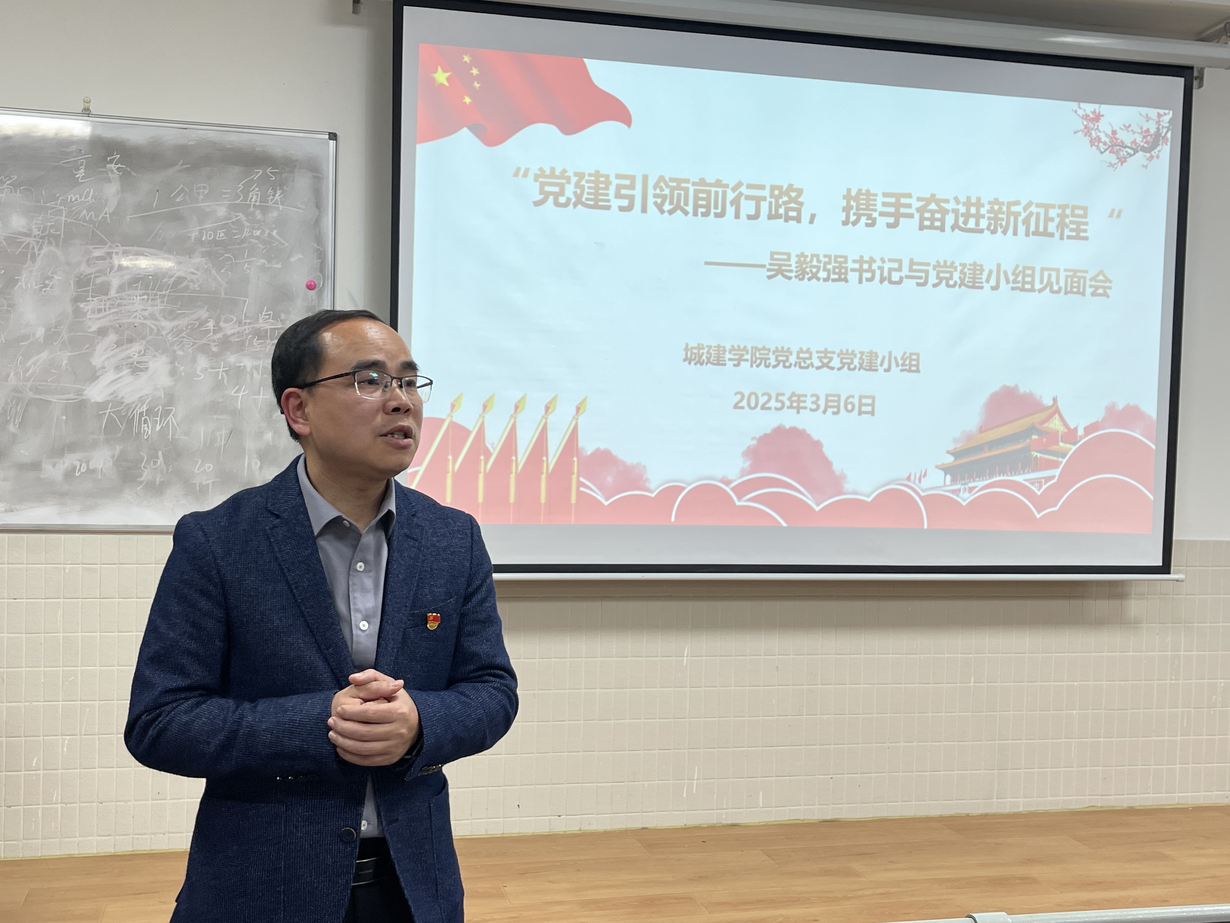 2025年3月6日晚上,城建學(xué)院黨總支黨建小組在2教404召開(kāi)了“黨建引領(lǐng)前行路,攜手奮進(jìn)新征程”——吳毅強(qiáng)書(shū)記與黨建小組見(jiàn)面會(huì)。參會(huì)人員有城建學(xué)院黨總支書(shū)記吳毅強(qiáng)同志、黨總支專職副書(shū)記兼學(xué)生黨支部書(shū)記郭君蘭同志及黨建小組全體成員。本次會(huì)議由黨總支組織員陳華林同志主持。