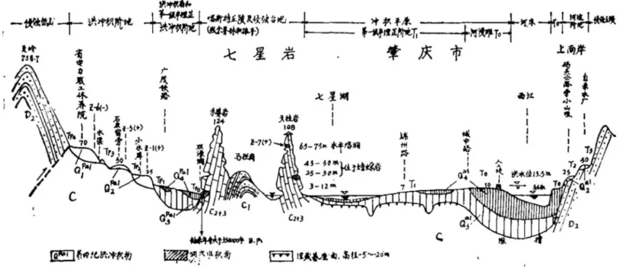 肇慶市七星巖地質(zhì)、地形、地貌剖面圖(劉尚仁, 1988)