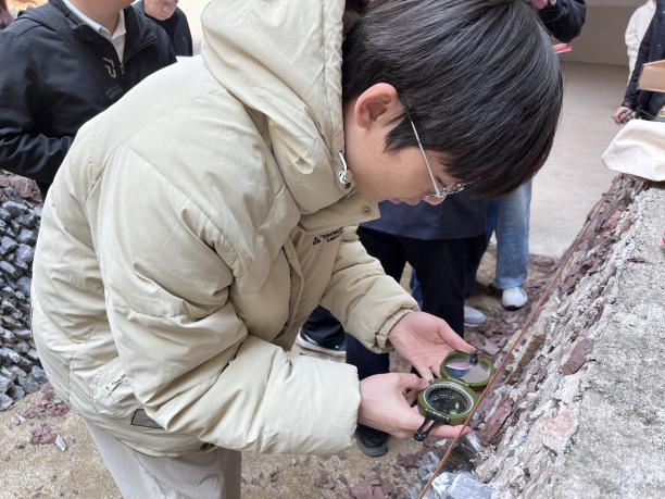 在實(shí)際操作環(huán)節(jié),學(xué)生以組為單位,按照崗位(前后測(cè)手、分層員、記錄員、產(chǎn)狀測(cè)量員、采樣員)扮演角色,積極參與到實(shí)踐中,他們手持地質(zhì)錘、羅盤、放大鏡、鋼尺等工具,認(rèn)真觀察探槽壁上的巖石特征、地層分界線以及各種地質(zhì)構(gòu)造現(xiàn)象,詳細(xì)記錄各項(xiàng)數(shù)據(jù),并嘗試?yán)L制編錄圖。遇到問(wèn)題時(shí),學(xué)生們主動(dòng)向教師請(qǐng)教,教師則耐心地為學(xué)生答疑解惑,給予針對(duì)性的指導(dǎo)和建議,確保每個(gè)學(xué)生都能掌握正確的操作方法。