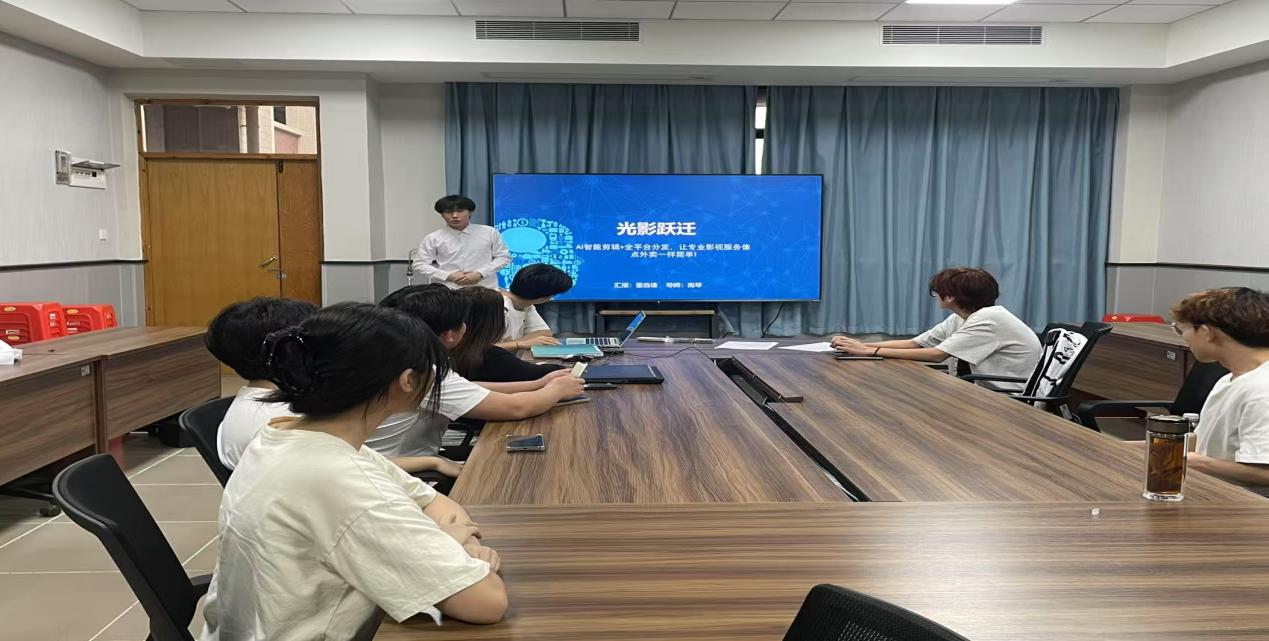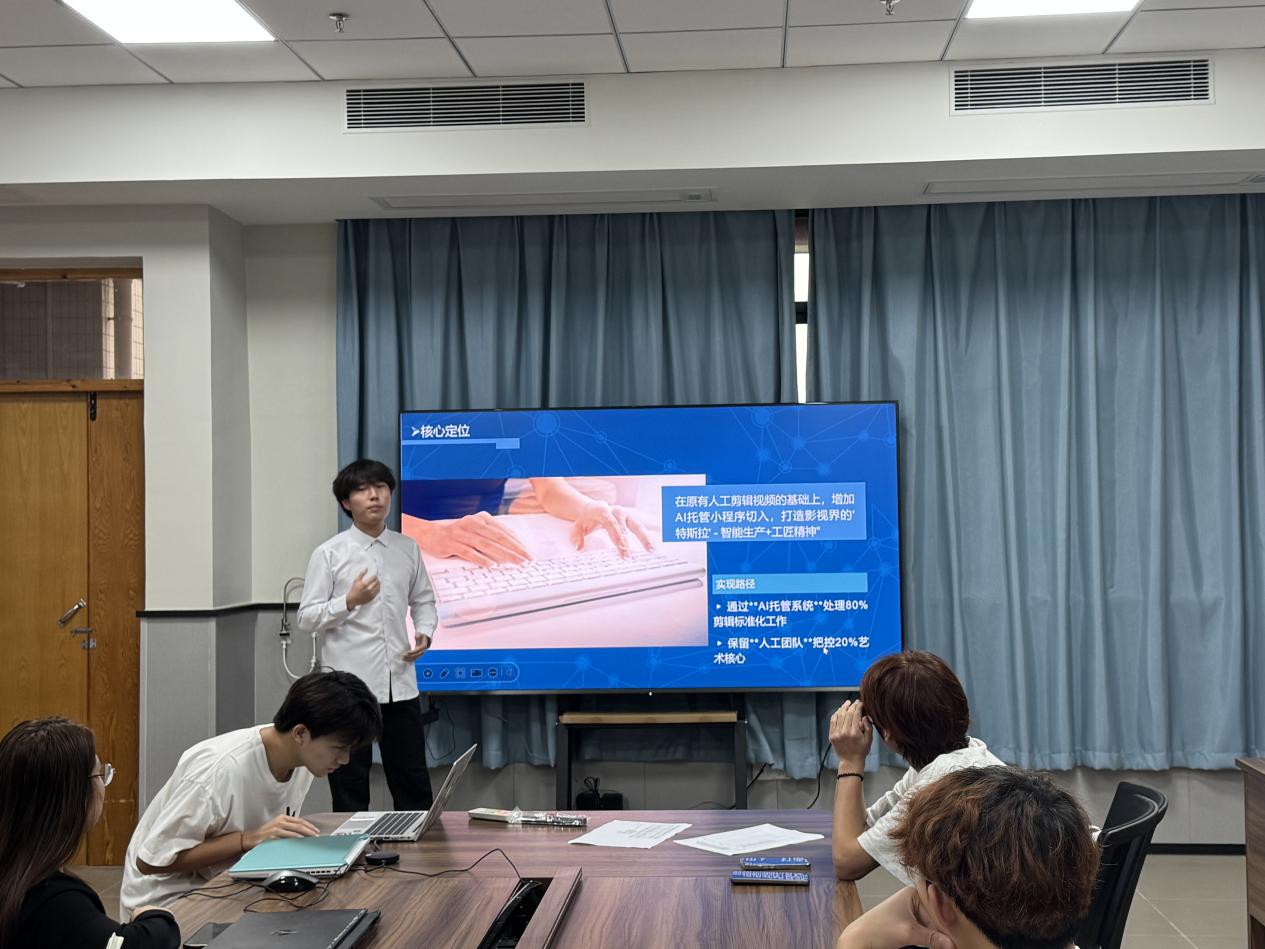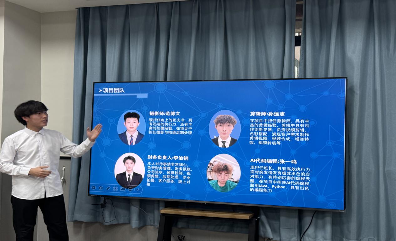在項目展示環(huán)節(jié),"光影躍遷"團隊負責人董自雄以AI智能剪輯為切入點,通過全平臺分發(fā)系統(tǒng)。該項目憑借"AI粗剪+人工精修"的雙核創(chuàng)新架構,提出剪輯市場需求的解決方案。
