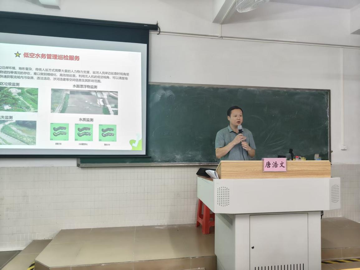隨后,唐浩文總經(jīng)理以豐富的行業(yè)經(jīng)驗與前沿視角展開分享。講座中,結(jié)合實際案例,系統(tǒng)介紹了無人機(jī)在城市行業(yè)應(yīng)用案例、城市管理服務(wù)、應(yīng)急管理服務(wù)處突服務(wù)、低空環(huán)境保護(hù)服務(wù)等城市管理場景中的創(chuàng)新應(yīng)用。通過播放PPT形式,讓師生們深刻認(rèn)識到無人機(jī)技術(shù)與城市管理深度融合的廣闊前景。
