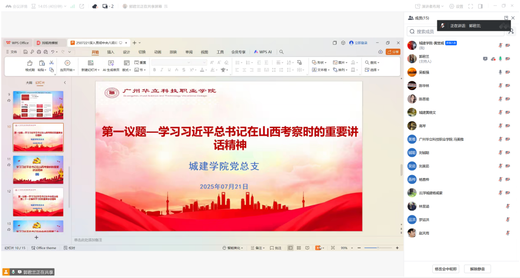2025年7月21日,城建學(xué)院黨總支召開深入貫徹中央八項規(guī)定精神學(xué)習(xí)教育推進會。會議以線上形式舉行,通過集中學(xué)習(xí)、案例剖析、工作部署等環(huán)節(jié),推動全體師生黨員深化思想認識、強化行動自覺。
