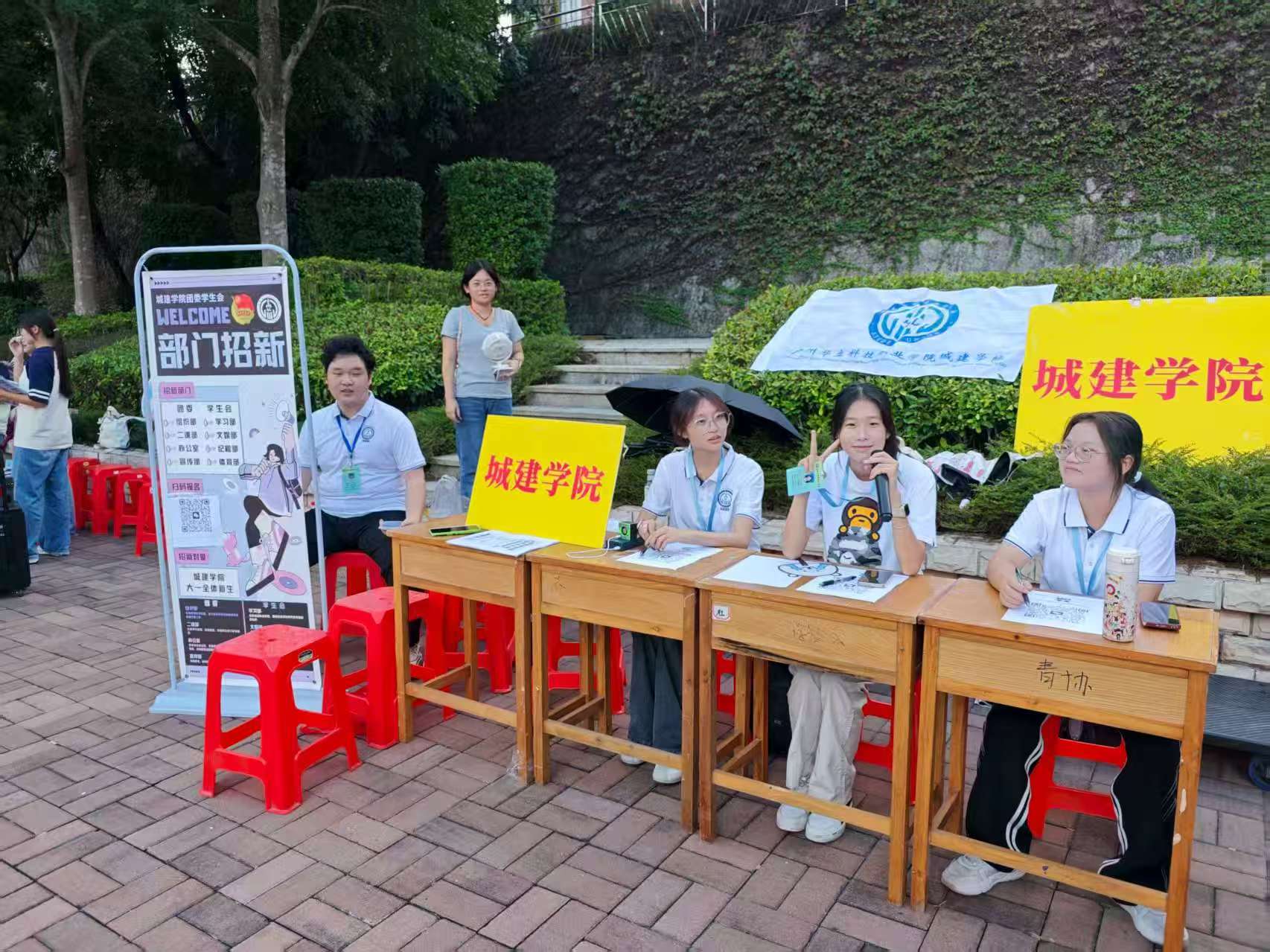 2025 年 9 月 15 日,城建學(xué)院團(tuán)委學(xué)生會(huì)在圖書館樓下小廣場(chǎng)正式舉行招新活動(dòng)。學(xué)院黨總支書記、副院長(zhǎng)吳毅強(qiáng),團(tuán)委書記楊威豪及全體輔導(dǎo)員老師來到招新現(xiàn)場(chǎng),了解招新組織情況,并與工作人員、咨詢學(xué)生親切交流,詳細(xì)詢問團(tuán)學(xué)各部門招新需求、報(bào)名人數(shù)及學(xué)生意向偏好,為招新活動(dòng)的順利推進(jìn)提供指導(dǎo)。