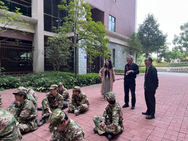 期間,徐耀鑒院長與承訓教官親切交談,詳細詢問軍訓計劃安排、訓練強度及學生適應情況,對教官們嚴格規(guī)范的訓練和耐心細致的指導表示感謝。他叮囑教官在保證訓練質量的同時,關注學生身體狀況,科學調(diào)整訓練節(jié)奏,確保軍訓安全有序開展。