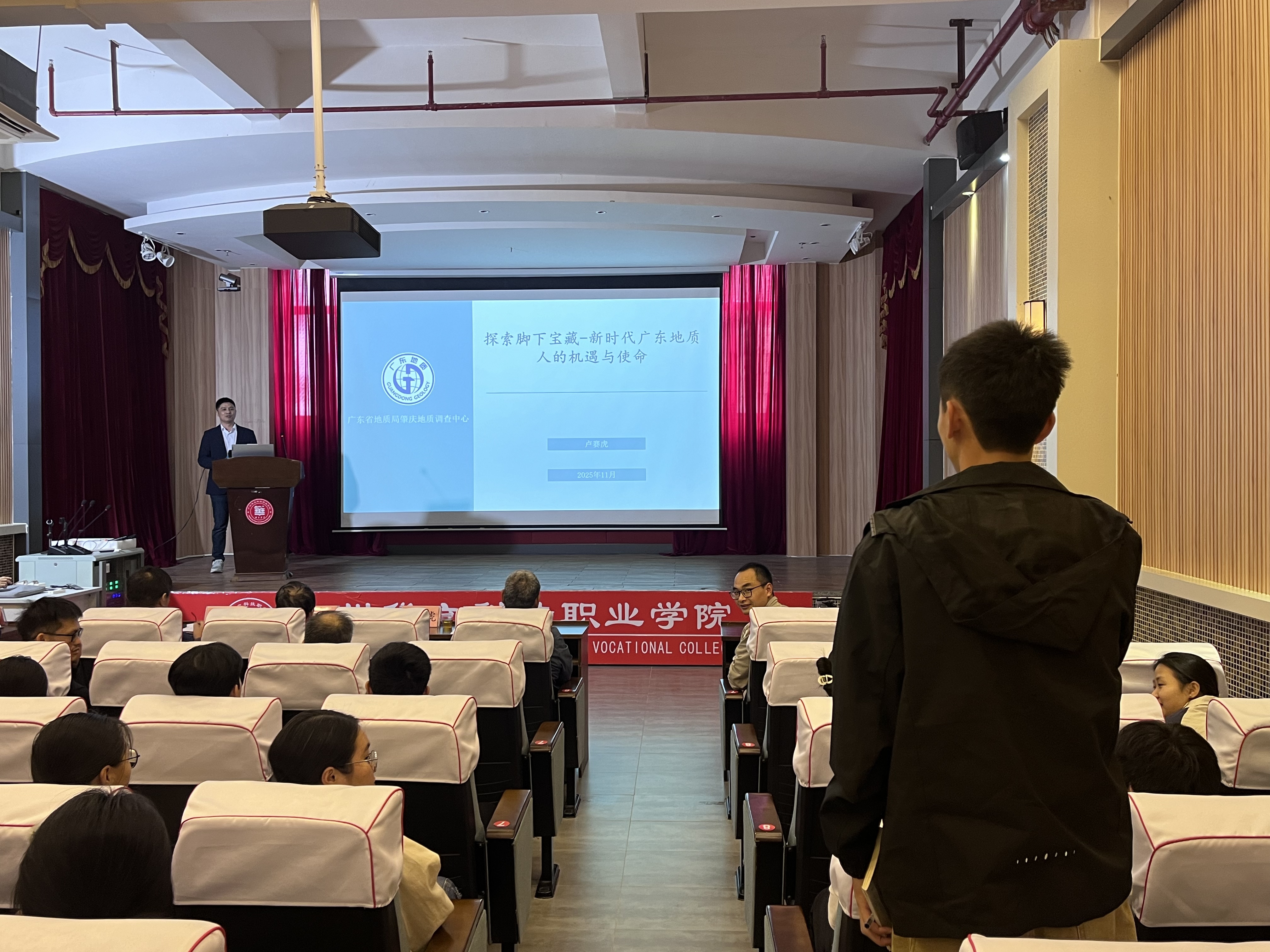 為展現(xiàn)新時代地質(zhì)工作的價值與使命,拓寬師生學(xué)術(shù)視野,11月14日,城建學(xué)院在云浮校區(qū)開展地質(zhì)專題講座。本次講座特邀廣東地質(zhì)局肇慶地質(zhì)調(diào)查中心礦產(chǎn)地質(zhì)部部長盧賽虎主講,以《探索腳下寶藏——新時代廣東地質(zhì)人的機(jī)遇和使命》為主題,教務(wù)處副處長李濤、教學(xué)督導(dǎo)隋良志、城建學(xué)院黨總支書記兼副院長吳毅強(qiáng)及學(xué)院相關(guān)專業(yè)師生代表共計120余人到場聆聽。