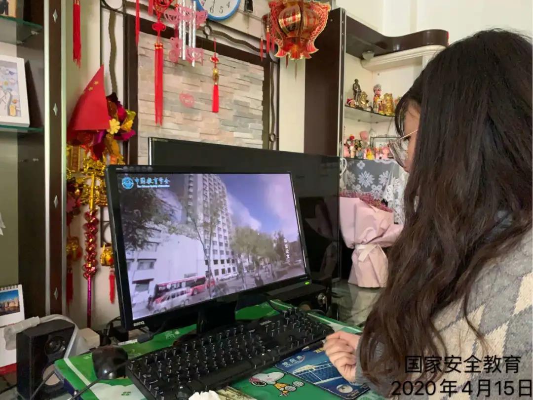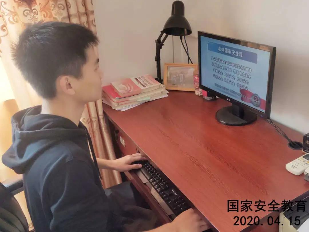 4月14日,線上學(xué)習(xí)之后,各班通過微信群通知學(xué)生登錄安全教育平臺,網(wǎng)上收看全民安全教育專題,了解相關(guān)的國家法律法規(guī);視頻學(xué)習(xí)之后,學(xué)生自主完成之后的題目,強化國家意識,提升安全素養(yǎng),掌握必要的防范之策。