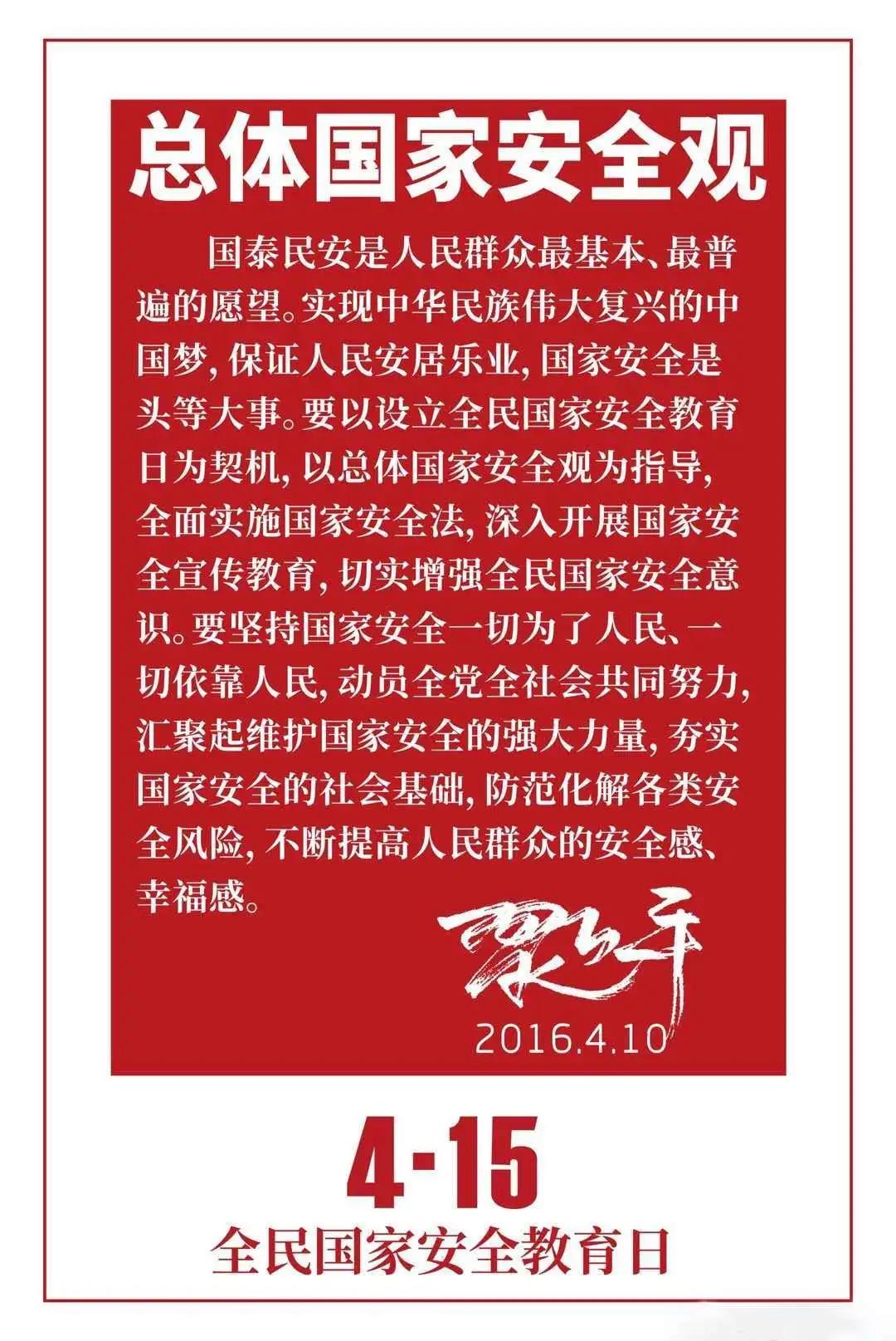國家安全不是模糊遙遠(yuǎn)的概念,而是明確具體的、細(xì)微的,它與每個人都息息相關(guān)。國家安全不僅關(guān)乎國家的興亡,而且還關(guān)乎每個公民的切身利益;維護國家安全,既能保護國家利益,也能保護個體利益,而一旦國家安全受損,我們就可能付出巨大代價。將維護國家安全上升到法律層面,以法律形式固化全民國家安全教育日,彰顯了我們?nèi)嬉婪ㄖ螄屯七M(jìn)國家安全宣傳教育工作的堅強意志和決心。我們要認(rèn)真學(xué)習(xí)宣傳《中華人民共和國國家安全法》,增強個人的國家安全意識和維護國家安全的能力。