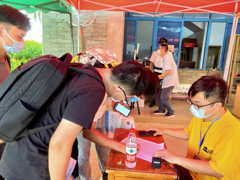 當天上午,學校的正大門早早搭起了帳篷,返校的學生入校需經(jīng)過各個關(guān)卡,通過檢測體溫、查驗葵花碼、查看移動軌跡,對行李和身體表面消毒,查驗學生身份和核對學生宿舍信息等多道程序,方能入校。