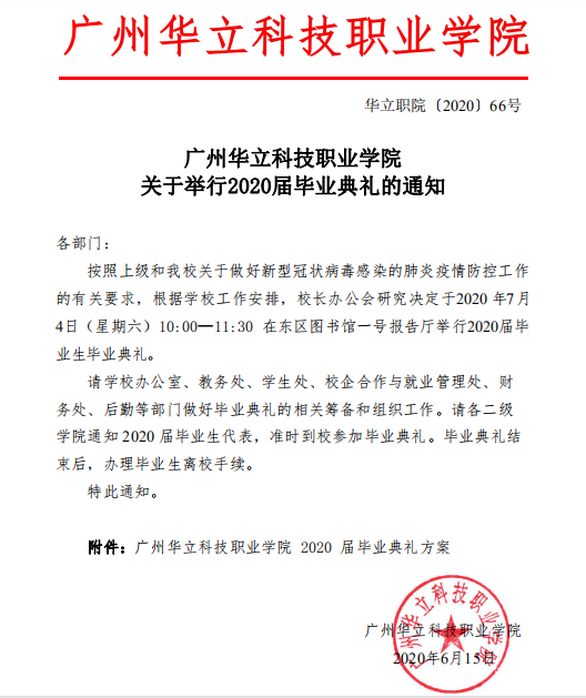 華立職院〔2020〕66號廣州華立科技職業(yè)學(xué)院關(guān)于舉行2020屆畢業(yè)典禮的通知.pdf