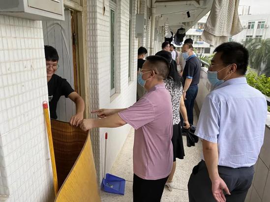 為確保學(xué)生安全返校,正常進入學(xué)校學(xué)習生活。廣州華立科技職業(yè)學(xué)院執(zhí)行校長馬龍海、副校長高堯來、學(xué)校辦公室主任朱少先、學(xué)生處副處長彭柳、電力與智能制造學(xué)院副院長曾祥彪等一行為首批返校學(xué)生帶來了暖暖的問候。不僅親自到校門口歡迎學(xué)生回家,而且深入到學(xué)生宿舍與已經(jīng)返校的學(xué)生聊宿舍生活、聊網(wǎng)課、聊防疫。溫暖的話語,親切的關(guān)懷讓歸家的學(xué)子倍感貼心。