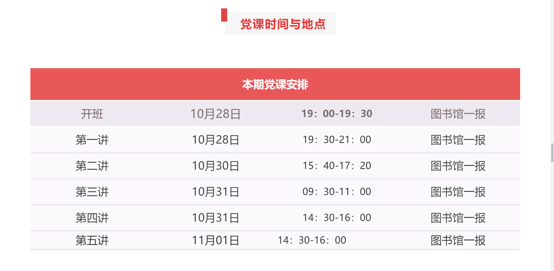 2. 每次黨課需提前15分鐘進(jìn)場(chǎng),到點(diǎn)準(zhǔn)時(shí)開(kāi)始登記遲到;