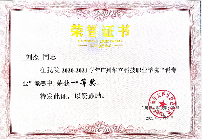 2020-2021學(xué)年廣州華立科技職業(yè)學(xué)院“說(shuō)專業(yè)”競(jìng)賽在2021年4月28日正式落下帷幕,8個(gè)二級(jí)學(xué)院選送的參賽老師,參加了這次別開生面的比賽。本次比賽教務(wù)處組織牽頭,由馬龍海執(zhí)行校長(zhǎng)擔(dān)任評(píng)審組組長(zhǎng),學(xué)校領(lǐng)導(dǎo)專家、二級(jí)學(xué)院院長(zhǎng)以及職能部門負(fù)責(zé)人等組成評(píng)審團(tuán),對(duì)賽事進(jìn)行了專業(yè)而嚴(yán)謹(jǐn)?shù)脑u(píng)審工作。最終經(jīng)過(guò)公正嚴(yán)謹(jǐn)?shù)某煽?jī)統(tǒng)計(jì),我院劉杰老師獲得“說(shuō)專業(yè)”競(jìng)賽一等獎(jiǎng)。