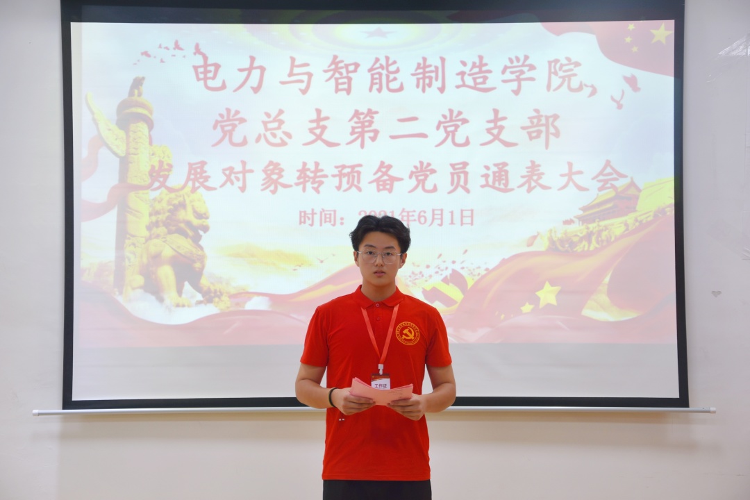 電力與智能制造學(xué)院黨總支副書記、第二黨支部書記鄭理廣發(fā)表講話,他首先對當(dāng)下的時(shí)事發(fā)表了看法,希望參加本次通表大會(huì)的發(fā)展對象能夠養(yǎng)成關(guān)注時(shí)事的習(xí)慣。最后,他表達(dá)了對25位發(fā)展對象可以如期被吸收為中共預(yù)備黨員的衷心祝愿。