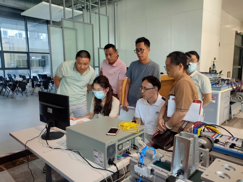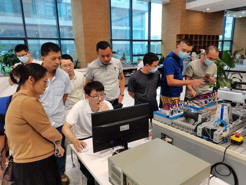 本期(班)培訓(xùn)集中面授21天,網(wǎng)絡(luò)研修42學(xué)時(shí)。具體培訓(xùn)分2個(gè)階段進(jìn)行:第一階段:7月11日-8月3日,網(wǎng)絡(luò)研修和集中研修。主要內(nèi)容為:運(yùn)動(dòng)控制系統(tǒng)開(kāi)發(fā)與應(yīng)用(初級(jí)),控制器的安裝、供料系統(tǒng)的搭建、物料輸送系統(tǒng)的搭建、搬運(yùn)系統(tǒng)的搭建、綜合供料系統(tǒng)應(yīng)用案例等5項(xiàng)任務(wù)。運(yùn)動(dòng)控制系統(tǒng)開(kāi)發(fā)與應(yīng)用(中級(jí)),伺服電機(jī)調(diào)試、伺服電機(jī)選型、MFC界面制作、供料系統(tǒng)與流水線輸送、按鈕控制絲杠模組運(yùn)動(dòng)、手脈輪控制絲杠模組運(yùn)動(dòng)、設(shè)備回零程序、單軸變速運(yùn)動(dòng)、跟蹤打標(biāo)、平面激光打標(biāo)、計(jì)算定位精度和重復(fù)定位精度、XY運(yùn)動(dòng)平臺(tái)的優(yōu)化等12項(xiàng)任務(wù)。第二階段:8月4日-8月8日,集中研修,主要內(nèi)容為:固高科技跟崗見(jiàn)習(xí)綜合實(shí)踐等,參觀了松山湖國(guó)際機(jī)器人產(chǎn)業(yè)基地和固高科技園。了解了國(guó)際機(jī)器人基地的發(fā)展歷程及固高生態(tài)體系、交流了通過(guò)聯(lián)結(jié)香港、內(nèi)地和全球的高校、研究所、企業(yè)、上下游供應(yīng)鏈等資源進(jìn)行機(jī)器人及相關(guān)行業(yè)創(chuàng)業(yè)孵化的成功案例。