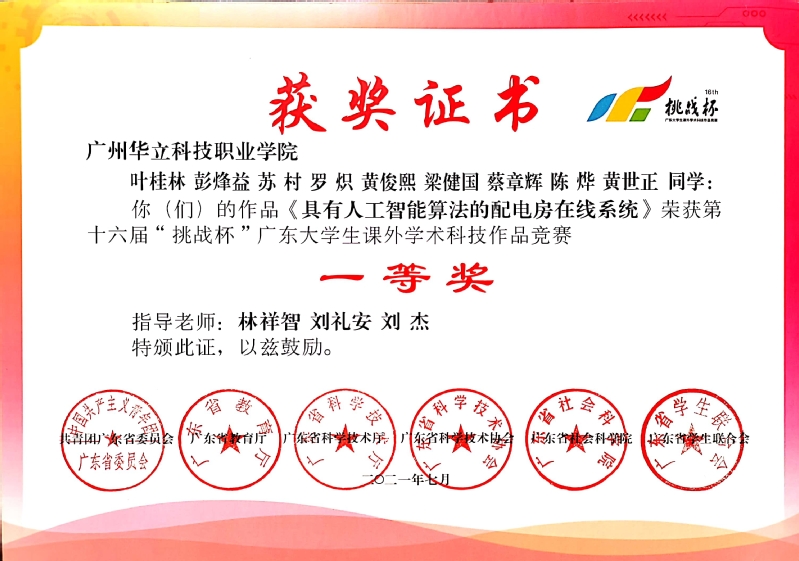 2021年7月,電力學(xué)院學(xué)子參加第十六屆“挑戰(zhàn)杯”廣東大學(xué)生課外學(xué)術(shù)科技作品競(jìng)賽,共有4個(gè)團(tuán)隊(duì)通過學(xué)校評(píng)審,經(jīng)過省專家網(wǎng)評(píng),有2個(gè)項(xiàng)目入圍終審決賽。7月17日至18日,由省團(tuán)委、省教育廳、省科技廳、省科協(xié)、省社科院、省學(xué)聯(lián)共同舉辦的第十六屆“挑戰(zhàn)杯”廣東大學(xué)生課外學(xué)術(shù)科技作品競(jìng)賽終審決賽取得優(yōu)異成績(jī)。電力與智能制造學(xué)院學(xué)子不負(fù)眾望,共獲4個(gè)獎(jiǎng)項(xiàng),分別獲得一等獎(jiǎng)1項(xiàng),二等獎(jiǎng)1項(xiàng),三等獎(jiǎng)2項(xiàng)。
