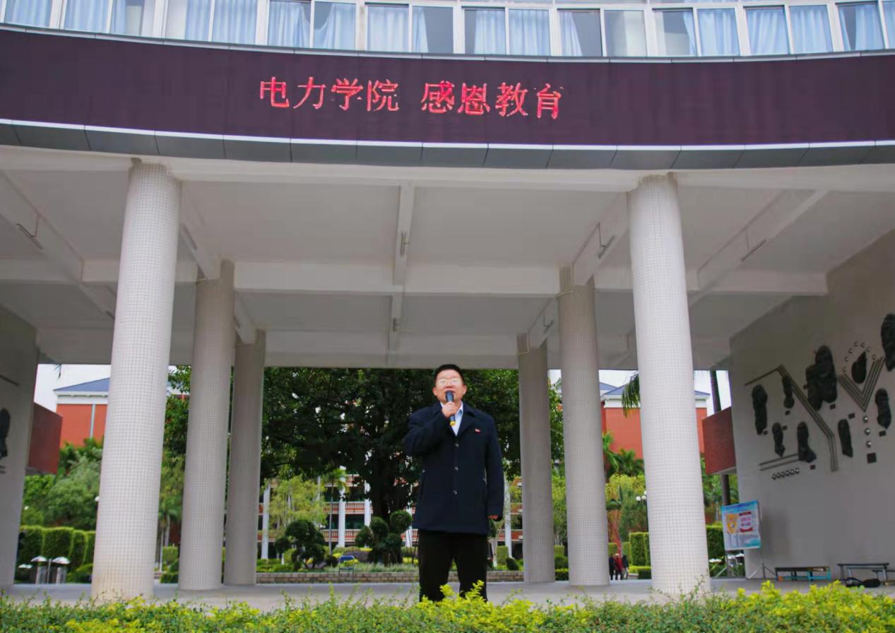 升旗結束后,由曾祥彪副院長為本次升旗儀式進行講話,主題是:“感恩教育”。曾副院長提到: