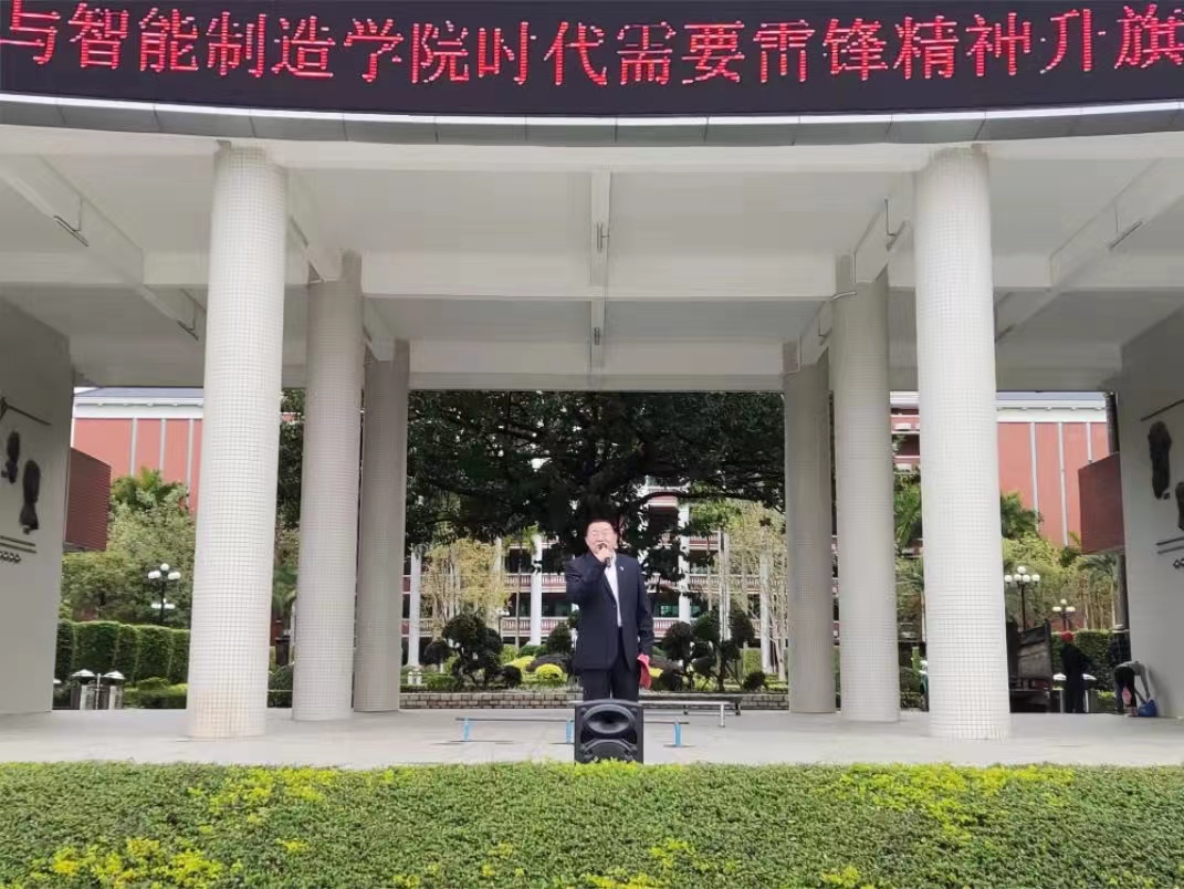 本次升旗儀式由電力學(xué)院曾祥彪副院長發(fā)言;曾副院長說到:“雷鋒的一生,是把有限的生命投入到無限的為人民服務(wù)之中的一生。在新時(shí)代中國,在共產(chǎn)黨領(lǐng)導(dǎo)下涌現(xiàn)出了一批又一批“新雷鋒”。一輩子忠于黨、全心全意為群眾謀利益的楊善洲;創(chuàng)辦免費(fèi)女子高中,為落后山區(qū)的教育事業(yè)默默奉獻(xiàn)的張桂梅;不顧個(gè)人安危而積極投身抗疫前線的醫(yī)護(hù)人員;為北京冬奧會(huì)辛勤付出的2.7萬名志愿者們……