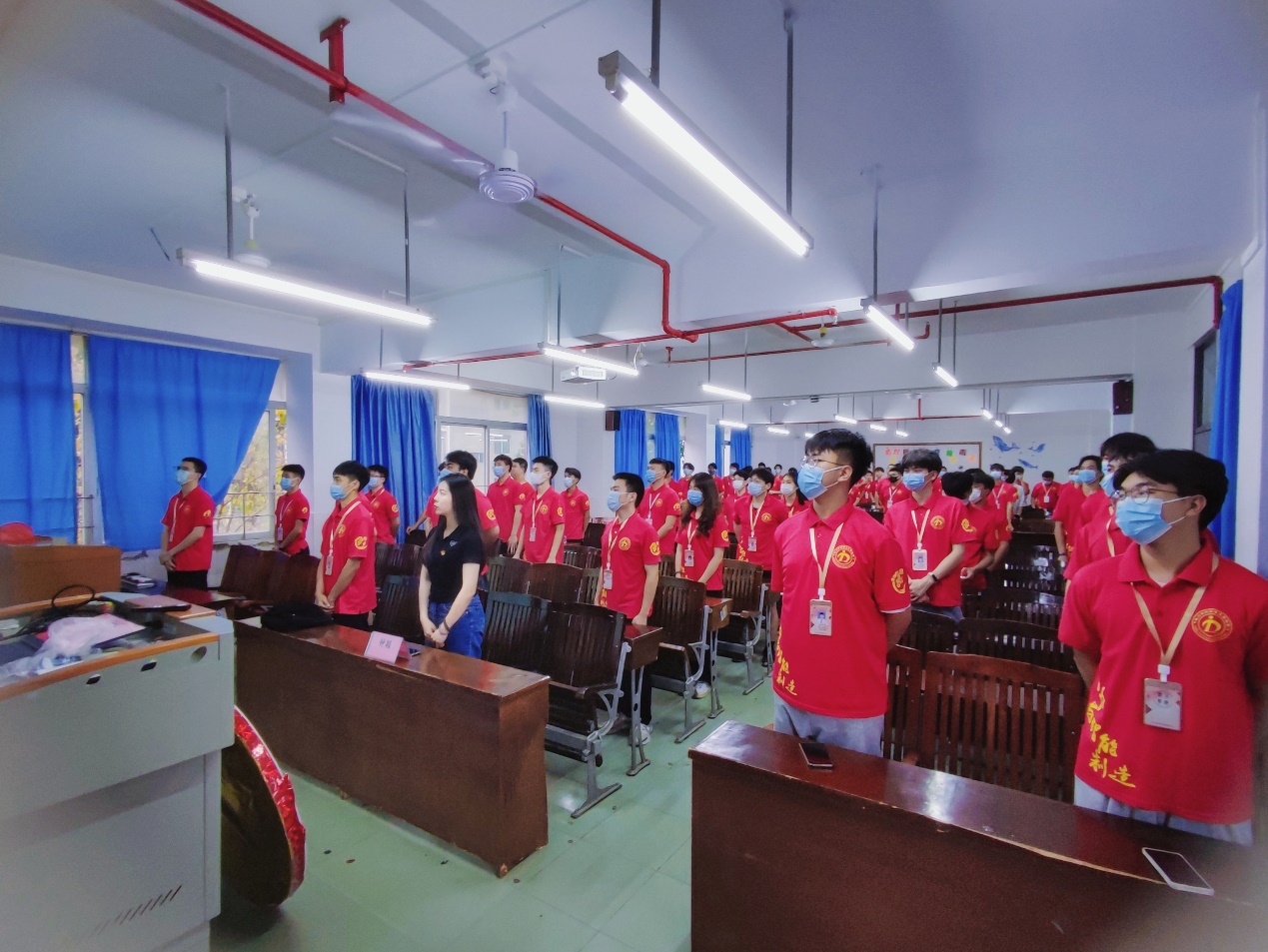 當(dāng)熟悉的旋律響起時(shí),每個(gè)人站得筆直,齊聲高唱共青團(tuán)團(tuán)歌《光榮啊,中國共青團(tuán)》。