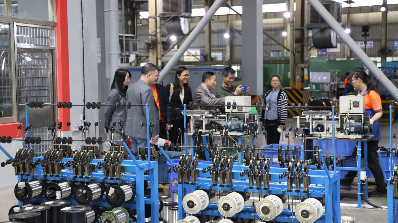 為了進一步了解電線電纜的生產(chǎn)過程,王秀敏院長一行人參觀了電纜的接線生產(chǎn)車間等,對電線電纜生產(chǎn)設(shè)備、生產(chǎn)工藝、質(zhì)量檢驗和崗位需求有了更深的了解。