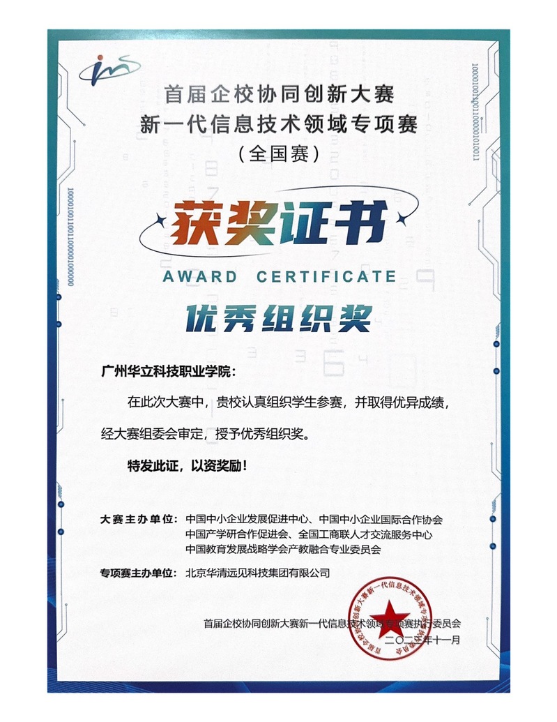 2023全國(guó)首屆企校協(xié)同創(chuàng)新大賽新一代信息技術(shù)領(lǐng)域?qū)m?xiàng)賽決賽,11月25日-26日在山東臨沂科技職業(yè)學(xué)院圓滿收官。本次大賽從初賽171所院校923支隊(duì)伍中經(jīng)過(guò)層層選拔脫穎而出的33支代表隊(duì)伍,從全國(guó)各地奔赴決賽現(xiàn)場(chǎng),參加專(zhuān)項(xiàng)賽前十強(qiáng)的角逐。我校選派電力與智能制造學(xué)院林祥智老師指導(dǎo)的麥馨兒、黃爍函、張國(guó)峰團(tuán)隊(duì)及計(jì)算機(jī)信息工程學(xué)院魏育華老師指導(dǎo)的蔡嘉盈、黃欣榮、黃窈窈團(tuán)隊(duì)參賽,經(jīng)過(guò)激烈角逐均獲全國(guó)賽一等獎(jiǎng),并榮獲“優(yōu)秀組織獎(jiǎng)”。林祥智老師指導(dǎo)的學(xué)生團(tuán)隊(duì)榮獲專(zhuān)項(xiàng)賽前十強(qiáng),將于12月份參加企校協(xié)同創(chuàng)新大賽全國(guó)總決賽。