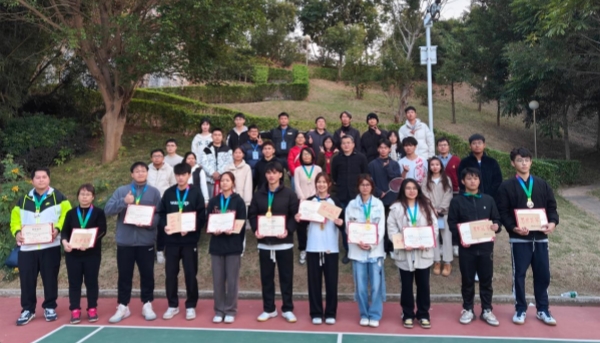 經(jīng)過一下午角逐,最終由學(xué)生朱芳燕、學(xué)生石輝俊、學(xué)生馬佳雄及朱君鏈(混合)分別斬獲女單冠軍、男單冠軍、混合冠軍;企業(yè)方祝碧花、學(xué)生鐘羽宸、企業(yè)方洪梅及莫韶?。ɑ旌希┓謩e獲得女單亞軍、男單亞軍、混合亞軍;學(xué)生許欣桐、學(xué)生吳德鈞、教師陳彥均及學(xué)生吳綺靜(混合)分別拿下女單季軍、男單季軍、混合季軍。企業(yè)負(fù)責(zé)人三浦宏晃經(jīng)理、華立職院校領(lǐng)導(dǎo)張劍鋒、華立中英文學(xué)校副校長(zhǎng)陳耀輝分別為獲獎(jiǎng)選手頒獎(jiǎng)。