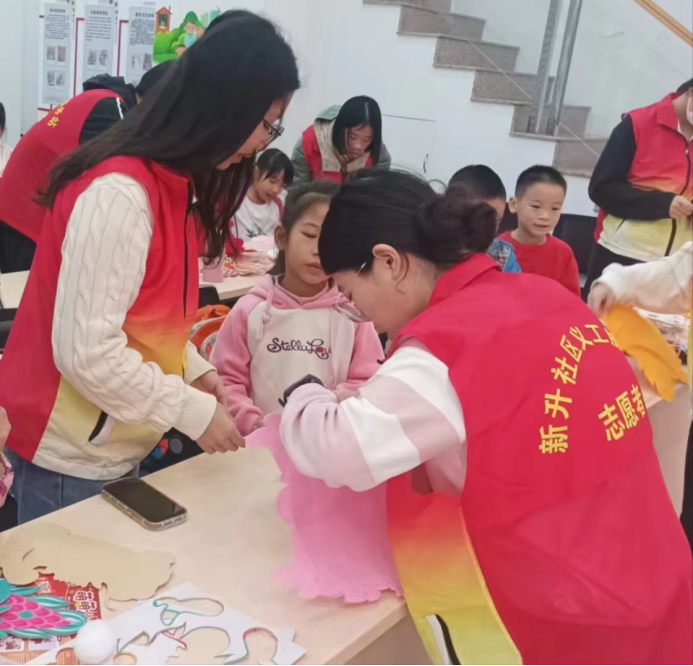 圖3肖健敏同學(xué)為孩子們做手工輔導(dǎo)