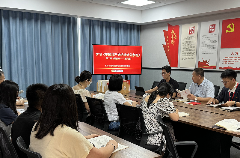 電力與智能制造學院黨總支書記褚玉峰參加了教師黨支部的黨紀學習教育,他帶領全體黨員學習《中國共產(chǎn)黨紀律處分條例》中第四章至第六章的內(nèi)容。