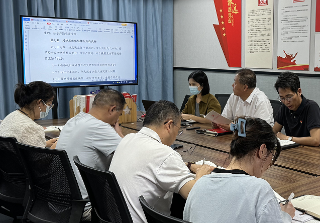 本節(jié)課,由電力與智能制造學(xué)院教師黨支部書記孫令真同志領(lǐng)學(xué)《中國(guó)共產(chǎn)黨紀(jì)律處分條例》中第七章至第九章的內(nèi)容。