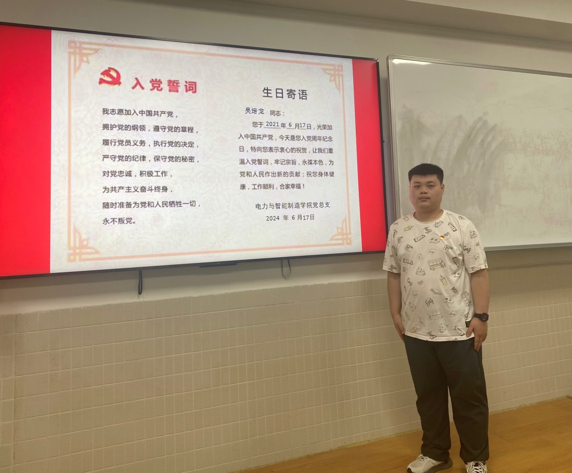 作為電力與智能制造學院的一名教師黨員吳培龍,6月17日早上,收到了學院黨組織發(fā)的“政治生日”賀卡,心情特別興奮,2021年6月17日是我加入中國共產(chǎn)黨的日子。