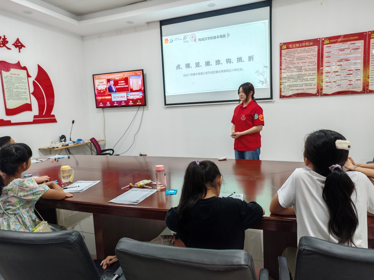 在課堂上,志愿者小老師首先向小朋友介紹了書法的基本知識和技巧,包括正確的筆畫順序、書寫姿勢和運筆方法等;志愿者們耐心地示范,引導(dǎo)小朋友們一筆一劃地練習(xí),讓小朋友了解和掌握書法的基本功,培養(yǎng)小朋友們對書法的興趣和熱愛。書法課的目的是:希望通過講解書法背后的歷史故事和文化內(nèi)涵,讓小朋友們感受到書法的韻律和美感,讓小朋友們了解書法,清楚認真寫好字的重要性。