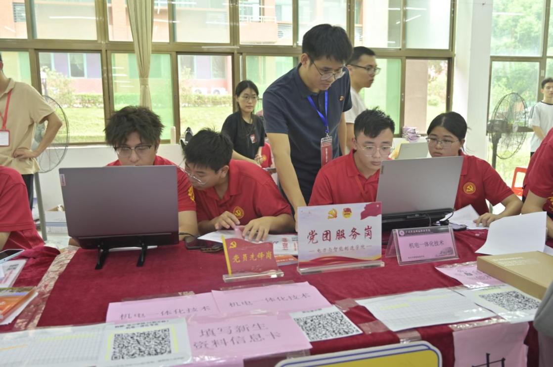 教師黨員、學(xué)生黨員、入黨積極分子全程投入迎新工作一線,密切配合、耐心解答、悉心指引,他們將“全心全意為人民服務(wù)”的宗旨,落實(shí)到迎新工作的每一個(gè)環(huán)節(jié),充分發(fā)揮先鋒模范作用,以高度負(fù)責(zé)的工作態(tài)度和熱情周到的服務(wù),讓每一位萌新們和家長感受到學(xué)院大家庭的溫暖,現(xiàn)場的紅色文化在浸潤著新同學(xué)的心靈。