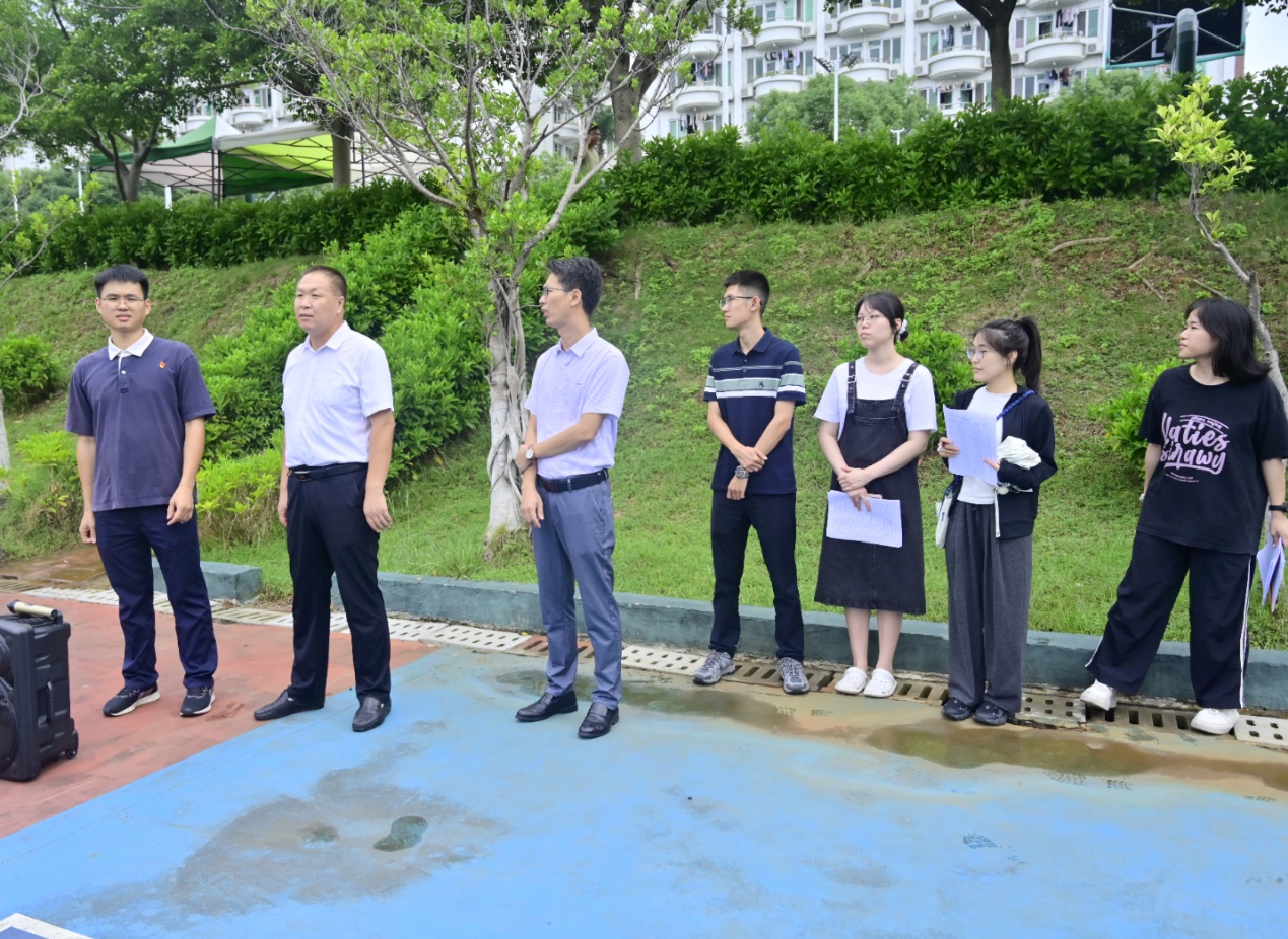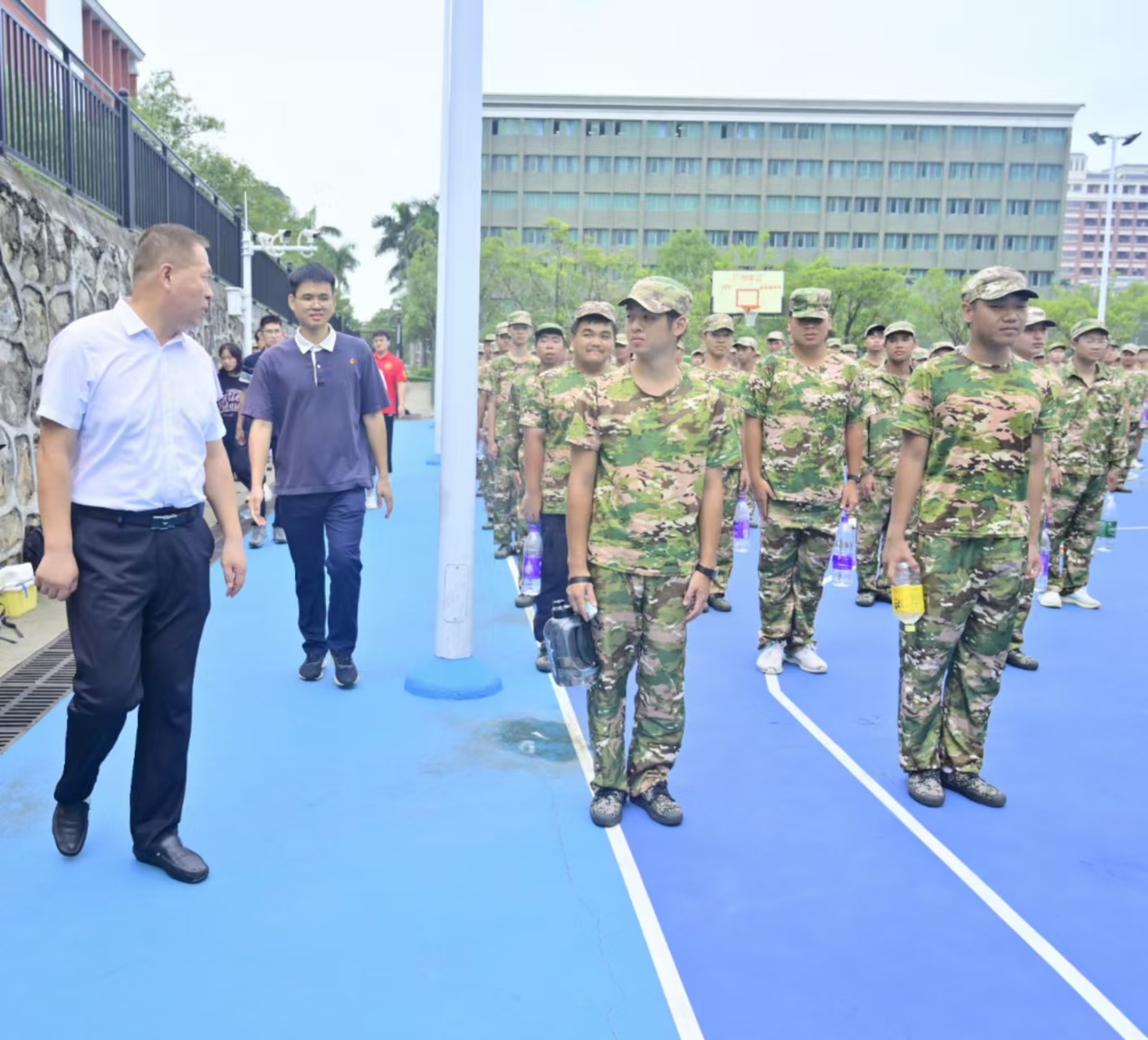 烈日當(dāng)空,青春滾燙。一年一度的新生軍訓(xùn)正如火如荼地進(jìn)行中。為關(guān)心學(xué)生身心健康,激勵(lì)新生磨礪意志、錘煉品格。9月25日上午,電力學(xué)院院長(zhǎng)、黨總支書(shū)記褚玉峰,學(xué)院副院長(zhǎng)孫令真,學(xué)院黨總支副書(shū)記、學(xué)管主任鄭理廣及2024級(jí)輔導(dǎo)員們一同到軍訓(xùn)現(xiàn)場(chǎng),看望并慰問(wèn)辛勤工作的軍訓(xùn)教官和正接受軍訓(xùn)的2024級(jí)新生們。