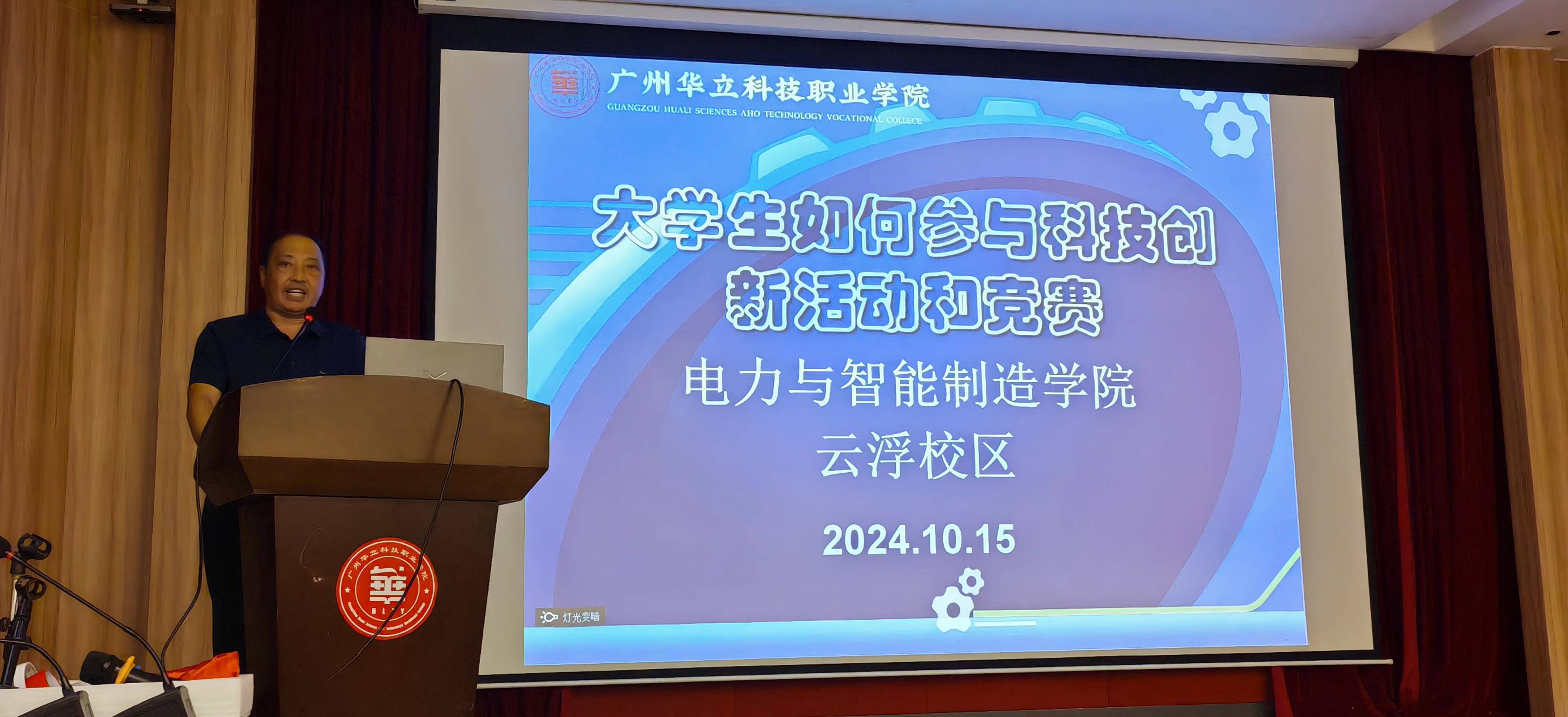 為了營造“技高行天下,能強(qiáng)走世界”的職業(yè)技能競賽氛圍,10月15日,我校云浮校區(qū)電力與智能制造學(xué)院在圖書館禮堂舉辦“大學(xué)生參與科研和競賽專題講座·暨24級培訓(xùn)班開班典禮”活動。校長助理張劍鋒,教務(wù)處副處長伍思立,科研處科長王秀麗,督導(dǎo)隋良志、陳福明,電力學(xué)院副院長馬洪德和骨干教師、2024級學(xué)生參加了會議。會上電力學(xué)院孫學(xué)雁教授作專題報告。