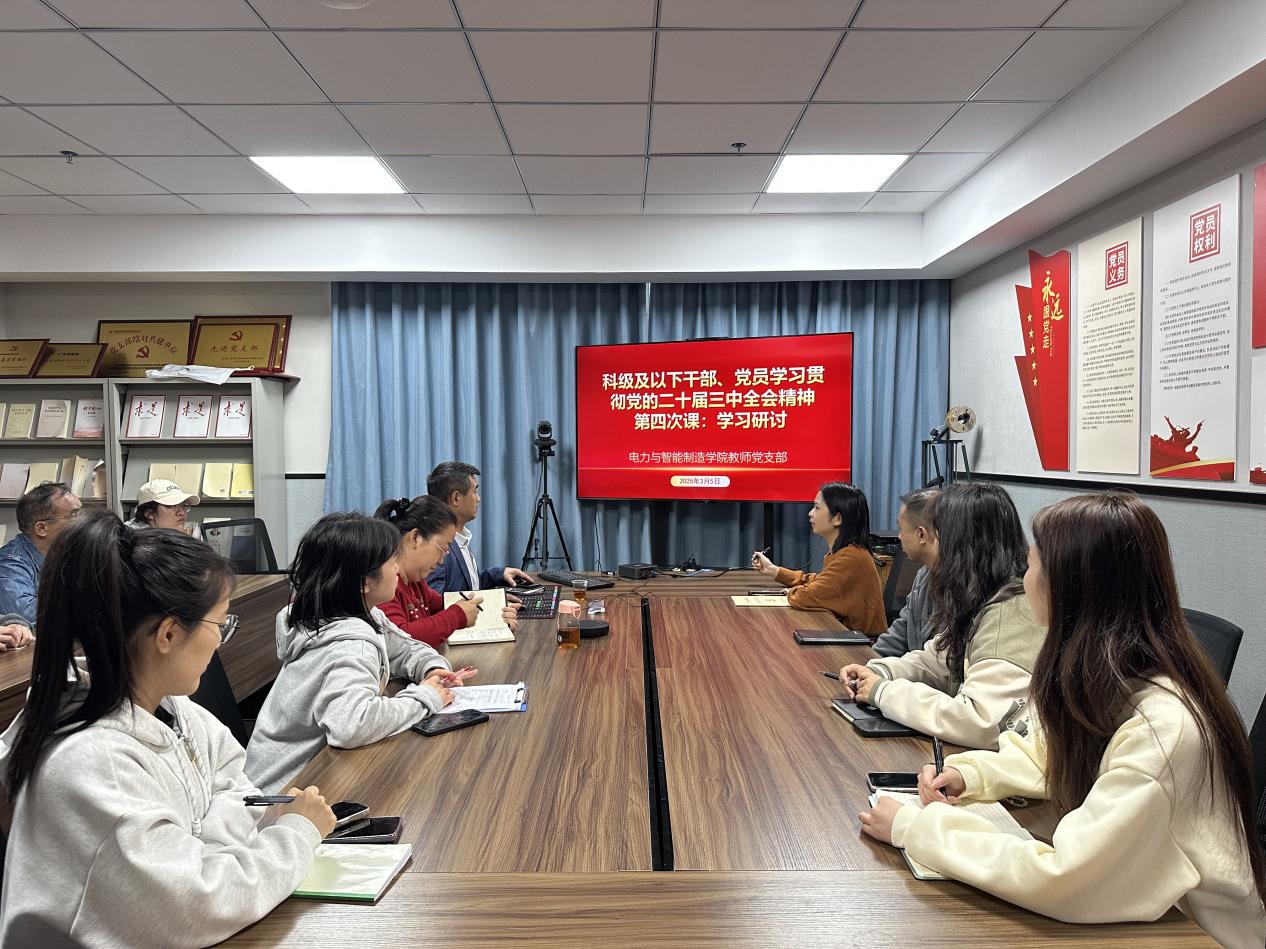 按照學(xué)校黨委的《科級及以下干部、黨員學(xué)習(xí)貫徹的二十屆三中全會精神》安排部署,2025年3月5日上午,電力與智能制造學(xué)院教師黨支部與學(xué)生黨支部在西1-514會議室,組織開展科級及以下干部、黨員學(xué)習(xí)貫徹黨的二十屆三中全會精神第四課——學(xué)習(xí)研討。