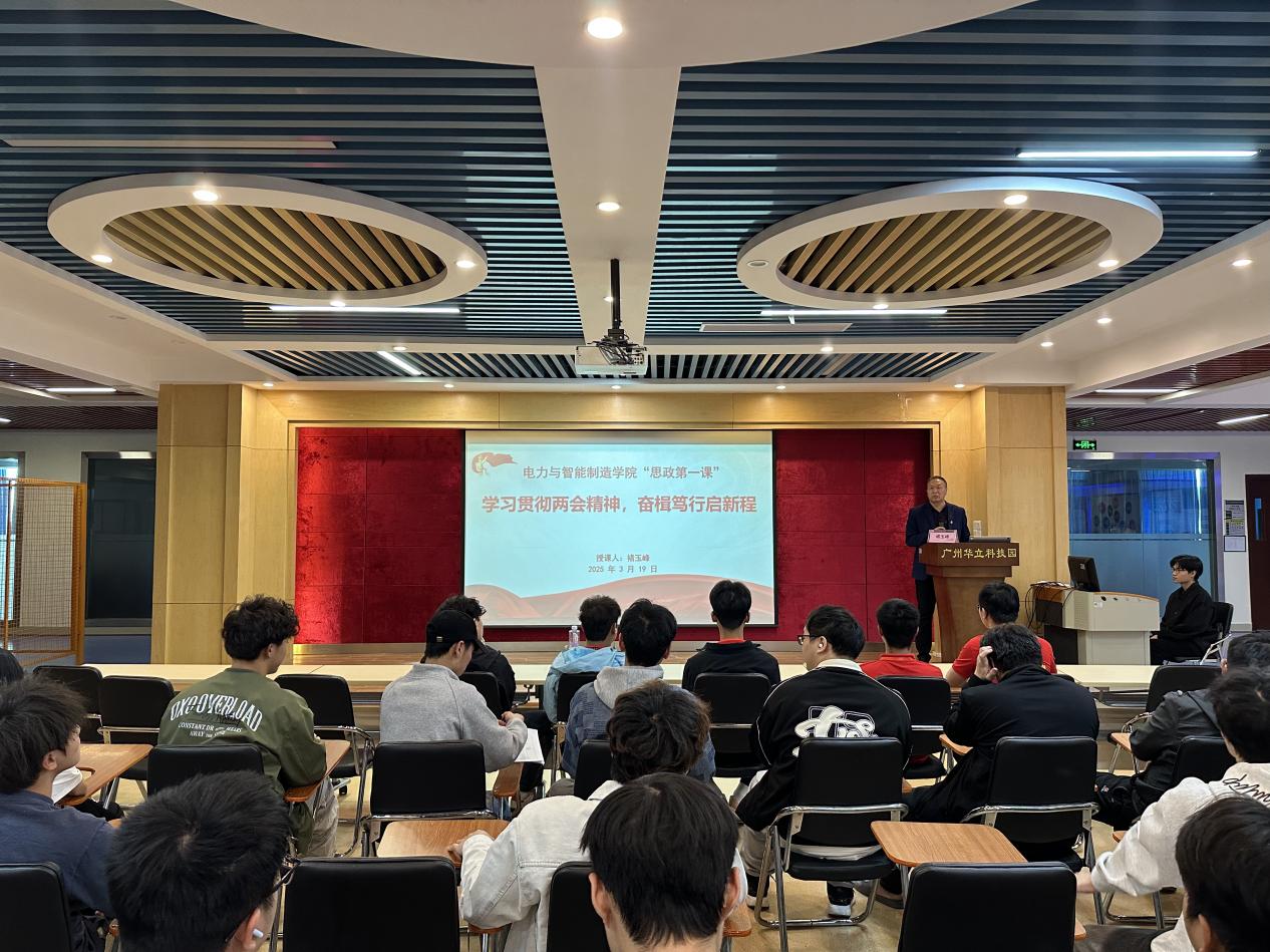 為學(xué)習(xí)貫徹全省教育大會(huì)精神,落實(shí)立德樹(shù)人教育根本任務(wù),電力與智能制造學(xué)院黨總支按照學(xué)校黨委要求,于3月19日下午在科技樓五樓,學(xué)院黨總支書(shū)記褚玉峰為同學(xué)們上了題目為“學(xué)習(xí)貫徹兩會(huì)精神,奮楫篤行啟新程”的春季學(xué)期開(kāi)學(xué)“思政第一課”。
