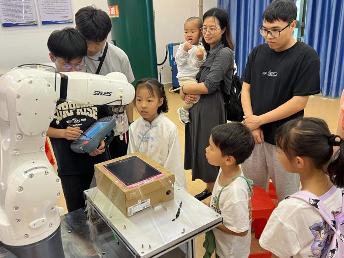 本次活動(dòng)近百名中小學(xué)生、三十一組家庭成員及科技愛(ài)好者走進(jìn)校園,在智能制造館體驗(yàn)區(qū)沉浸式感受智能制造的魅力,共同見(jiàn)證科技與教育的深度碰撞。