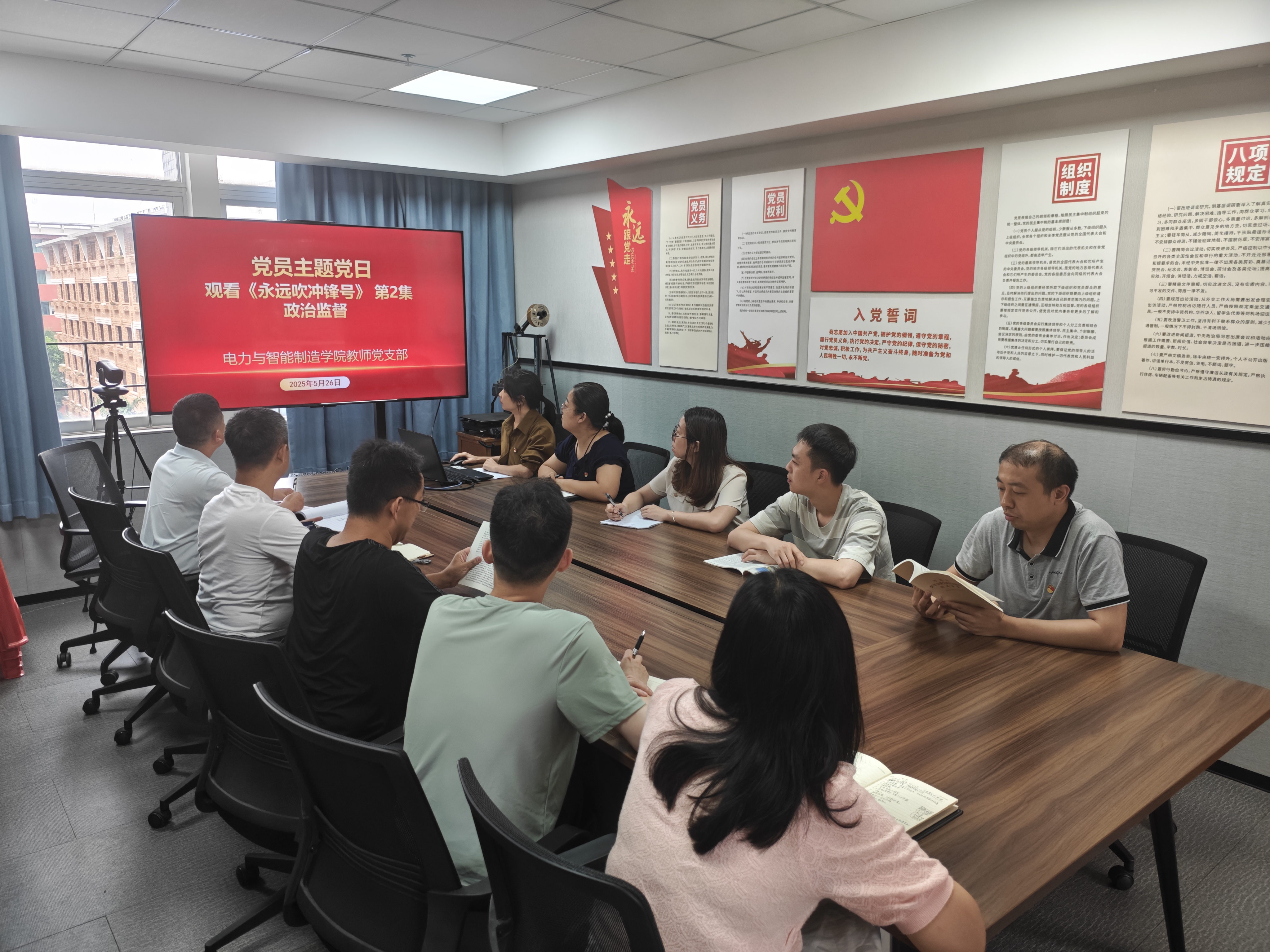 為深入貫徹中央八項規(guī)定精神學(xué)習(xí)教育,推進作風(fēng)建設(shè)常態(tài)化長效化,5月26日下午,電力與智能制造學(xué)院教師黨支部開展主題黨日活動——觀看警示教育片“《永遠吹沖鋒號》專題片第2集——《政治監(jiān)督案》”,此次主題黨日活動由林輝文副書記主持。