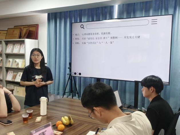 輔導(dǎo)員郭曉倩老師分享了如何做好學(xué)生的心理關(guān)懷與支持。她強(qiáng)調(diào)班級應(yīng)該建立速動通報,確保學(xué)生信息保密性,以提高師生關(guān)系互動和情感交流,從而提高學(xué)生的安全感。
