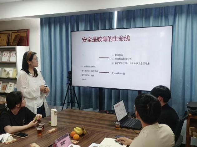 輔導(dǎo)員劉留老師分享了安全是教育的生命線。她主張從家校聯(lián)合,到按照規(guī)則制度處理,再到做好家長工作、為學(xué)生安全全面考慮。從點到線再到面出發(fā),正確處理學(xué)生可能出現(xiàn)的各種問題。